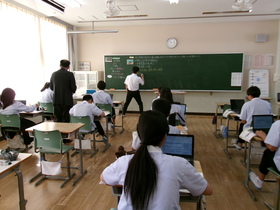 10月17日(金)に、町教育委員会による秋の学校訪問があり、教育長はじめ6名の方がお越しになりました。はじめに校長から生徒の様子などを報告し、生活指導と研究推進の取組について担当から説明をしました。2・3校時は授業参観で、多可町スタンダード授業づくり10ポイントの取組状況や生徒たちの学習の様子を見ていただきました。その後、お一人お一人から助言をいただいています。今後の学校での教育活動に活かしていきたいと思います。本日はありがとうございました。