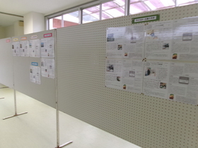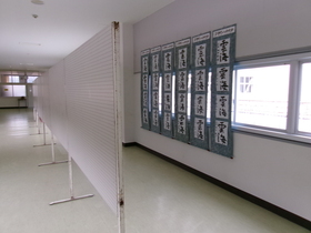 八千代コミュニティプラザから借用したパネルを1・2階中央廊下等に設置し、文化祭展示作業が始まりました。早速2年生のトライやる新聞と3年生の習字・俳句が展示されています。他にも色々な展示物が予定されています。生徒たちの力作が並ぶ展示の部も文化祭の大きな見所です。文化祭当日はもちろんですが、10月29日(水)と30日(木)のオープンスクールでは作業が完了している予定ですので、是非ゆっくりとご覧いただきたいと思います。