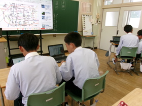 10月22日(水)の5・6校時に、町内3中学校の2年生が先週に引き続いての3校合同校外学習に向けたWeb班会議に取り組みました。全26班で大阪班別研修の企画を仕上げていきます。2回目とあって操作についてはだいぶスムーズにできており、実際の移動手段で要する時間や公共交通機関の出発・到着時間など、班で協力して調べたり企画書に書き込んだりしていました。早く作成が完了した班は、当日朝のスタートからの動きをシミュレーションしていました。完成した企画書は班長の在籍校で教員にチェックを受け、認定をしてもらいます。自分たちでつくり上げた企画書をもとに実際に大阪の街をフィールドとして活動します。楽しみにしています。