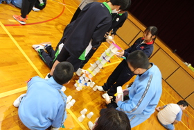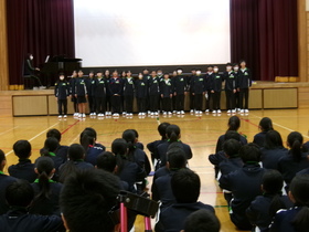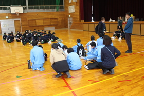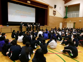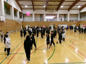 11月19日(水)の午前中に、町内3中学校1年生が中町中学校に集合し、3校合同活動を行いました。6月のわくわくオーケストラのときに須磨シーワールドで合同活動を行って以来、学年のメンバーとして久しぶりの再開です。はじめに、加美中、中町中、八千代中の順番で校歌を披露し合いました。八千代中は人数が一番少ないにもかかわらず堂々とした歌声を披露してくれ、とても嬉しく思いました。その後、加美中から風船バレー、中町中からジェスチャーゲーム、八千代中からイントロクイズの演し物があり、合同の班対抗で楽しい時間を過ごしました。最後に学年全員で記念写真を撮影し、今回の3校合同活動は終了となりました。今回の合同活動でお互いの絆がさらに深まったと思います。次にメンバーが集合するのは3月8日(日)に予定されているプレ登校です。来年春の多可中学校での合流まで、それぞれの学校でさらに成長してくれることを期待しています。