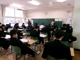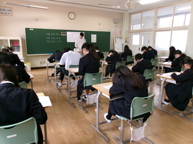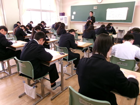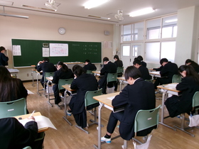 11月26日(水)から3日間の第3回定期考査が始まりました。初日1つ目の教科は1年生が数学、2年生が英語、3年生が国語です。どの教室もピーンと張り詰めた空気につつまれ、一生懸命に問題を解く生徒の姿が印象的でした。特に、進路を控えた3年生にとっては、進路選択に大きな影響を与えるテストとなります。いつもの人なつっこい笑顔は封印して、本気モードでがんばっていました。