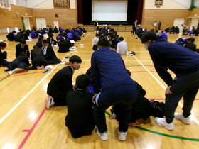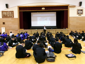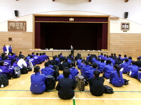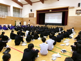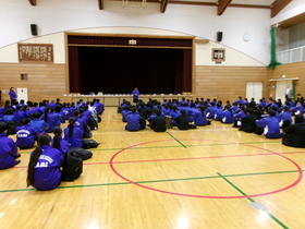 11月10日(月)の午後に、中町中学校で明日に迫った2年生3校合同校外学習の事前指導があり、町内の中学校2年生が一堂に会しました。司会は本校の委員長会で、スムーズな進行に尽力してくれていました。まず、加美中学校のT校長先生から、これまでから交流を行ってきたが、いよいよ本番を迎える。みんなにとっていい校外学習にしてくれるのを期待しているとの挨拶がありました。次にしおりの読み合わせを行い、大切なポイントが押さえられました。最後に班でバス座席の相談を行いました。どの班も輪になってしっかり決めることができました。いよいよ明日は本番です。今日はゆっくり寝て明日を元気に迎えられるようにしましょう。