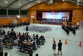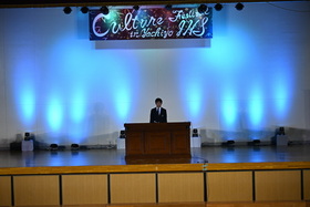 文化祭も閉会行事となりました。校長からは「輝き つながり」のテーマどおりのすばらしい文化祭を作り上げてくれたと話がありました。文化部長のHさんからは「今日1日楽しめたか」といった問いかけがあり、生徒たちも楽しかったという反応をたくさん返していました。フィナーレに吹奏楽部の伴奏で八千代中学校校歌を全員で斉唱しました。体育祭後の4週間の期間での準備は大変だったと思いますが、みんなの力で生徒の手による学校行事づくりをやりきってくれました。これからの学校生活にも生かしてくれるものと期待しています。よくがんばりました。保護者の皆さまも多数お越しくださり本当にありがとうございました。今後とも、どうぞよろしくお願いいたします。