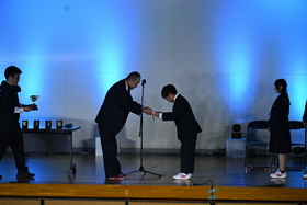午前の第1部は人権弁論大会です。各学年から2名ずつ計6名の弁士が、「固定観念」「自分事として考える」「言葉の重み」「誹謗中傷について」「日本で起きている外国人差別について」「今の自分にできること」と題したテーマで堂々と発表を行いました。人権擁護委員の皆さまの審査により、最優秀賞の2年生Sさんにカップと中ライオンズクラブからの楯、優秀賞の3年生Nさんにカップが授与されました。他の4名にも記念の楯が授与されました。人権擁護委員を代表してYさんより、一人ひとりの弁論に対して講評いただき、すばらし発表であったことを褒めていただきました。また、生徒たちの聞く態度もとても良かったとの感想をいただきました。弁士の落ち着いた語りかけが聴く人にしっかり届き、いのちと人権について深く考えるとても良い機会になりました。弁士の皆さん、とてもよくがんばりました。中ライオンズクラブさん、人権擁護委員さんにも厚くお礼申し上げます。ありがとうございました。