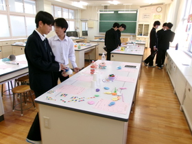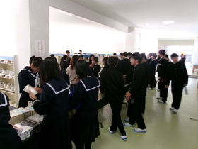 文化祭では体育館でのステージの部だけでなく、生徒による作品の展示も大きな見所です。昼休みの時間には、生徒や保護者の皆さまにゆっくりとご覧いただくことができました。本日は「古本市」コーナーを増設していましたが、生徒たちや保護者の皆さま、地域の皆さまにたくさんの本を手に取っていただき、お持ち帰りいただくことができました。