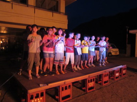 7月18日~19日、6年生の親子の集いで「親子キャンプ」をしました。6年生のキャンプは、毎年恒例になっていますが、今年は、「八千代北小学校最後の親子キャンプ」でした。学級委員さんがプログラムを考えてくださり、流しそうめんやお父さんとのカレー作りなど、盛り沢山。中でも、八千代北小、最後のキャンプの記念に「ありがとう八千代北小」とみんなで寄せ書きをしました。それをタイムカプセルに入れたんですよ。保護者の方も、八千代北小の卒業生でもあり、感慨深い思いで、寄せ書きをされたのでは…。キャンプファイヤーでは、6年生のスタンツやみんなでダンスして盛り上がりました。その後肝試しもあって、なかなか寝付けなかったですが、それもいい思い出です。本当に楽しい、子どもたち、親子、八千代北小とも絆を深めたキャンプでした。
